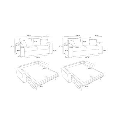 Kordbársony, mindennapos alvásra-kinyitható, krémszínű, háromszemélyes, szélesség 225 cm