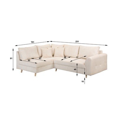 Kordbársony, bal oldali-L alakú, bézs, háromszemélyes, szélesség 231 cm