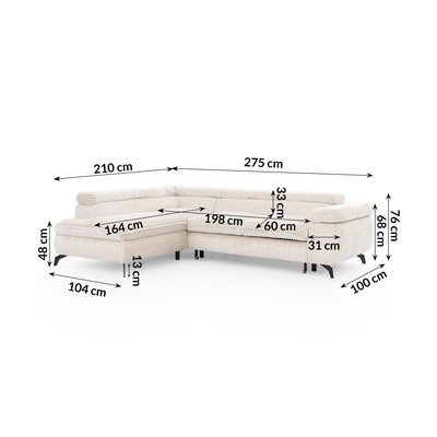 KordbársonyÁllítható-kinyitható-tárolóhelyesBal oldali-L alakúKrémszínűHáziállatbarát-foltállóNégyszemélyesSzélesség 275 cm
