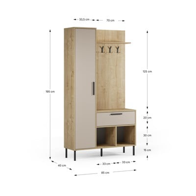 Krémszínű-natúr színű előszoba bútor tölgyfa dekorral 108x195x35 cm Heidy – Marckeric