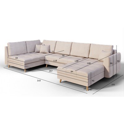 Jobb oldali-U alakú, bézs, öt- és többszemélyes, szélesség 310 cm