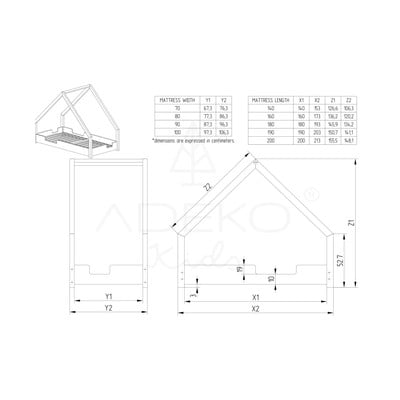 Loca D gyerekágy90x200 cm, házikó alakú, ágyráccsal, borovi fenyő, felületkezelés: kezelés nélkül-felületkezelés: kefélés, natúr színű