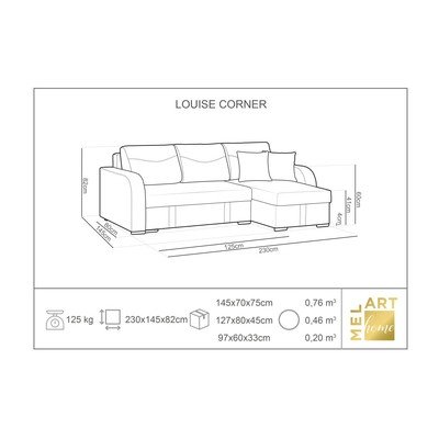 SarokkanapéZsenília, kinyitható-tárolóhelyes, jobb oldali-bal oldali-variálható sarok-heverő résszel, kék-türkiz, háromszemélyes, szélesség 230 cm, mélység 80 cm, ülésmélység 57 cm