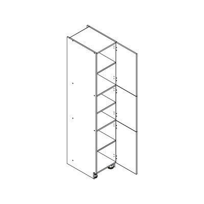 A Kian konyhai élelmiszertároló szekrény az Artisan tölgyfára hűen emlékeztető laminált lapot egy elegáns fekete díszbetéttel ötvözi. Összesen öt polccal rendelkezik, 16 mm vastag melaminlapból készült ajtók mögé rejtve. A Soft Closing rendszerrel ellátott zsanéroknak köszönhetően a zárás halkan és zökkenőmentesen, csapódás nélkül történik. Maga a szekrény fehér színű. 16 mm vastag laminált lemezből készült.