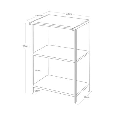 A három polc bőséges helyet biztosít például az olyan nagyobb konyhai készülékeknek, mint a mikrohullámú sütő vagy a kenyérpirító. Emellett 5 különálló kampót is tartalmaz további tárgyak felakasztásához.