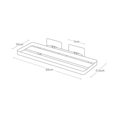 A mellékelt ragasztós akasztóval a polc könnyen felszerelhető a falra, így értékes helyet takaríthatsz meg a mosdókagylón.