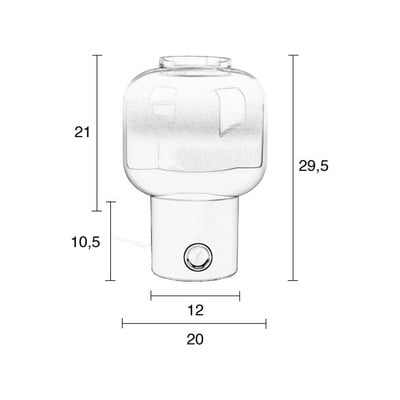 Dimmelhető, üveg búrával, fém-üveg, konnektorhoz csatlakoztatható, fekete, magasság 29,5 cm