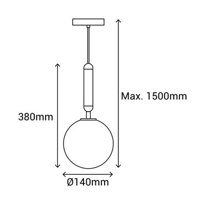 Musa függőlámpaÜveg búrával, fém, fekete, ø 14 cm, magasság 150 cm