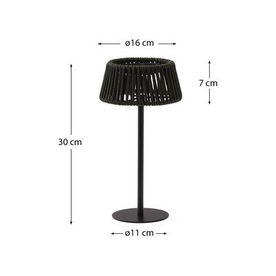 A Kave Home márka Aldet napelemes LED asztali-hordozható kültéri lámpája stílusos és praktikus megoldást kínál a kültéri terek megvilágítására. Zsinórból készült lámpabúrája kellemes megjelenésű, és tökéletesen kiegészít bármilyen kültéri környezetet.