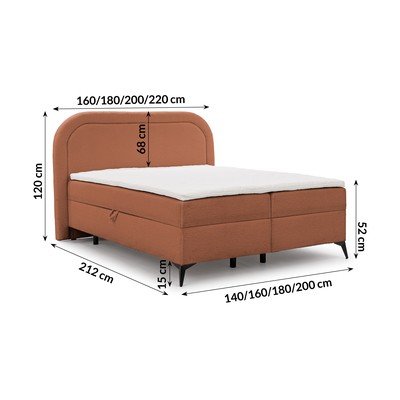 160x200 cm, ágyneműtartós, kárpitozott, matraccal-topper fedőmatraccal, buklé, narancssárga