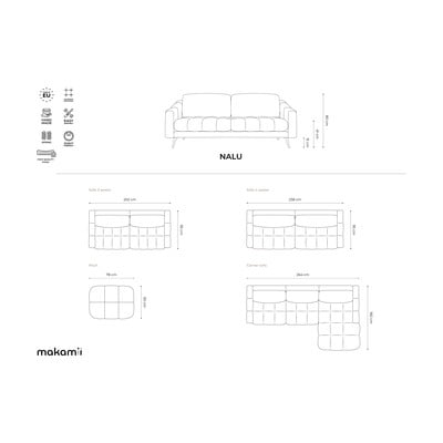 Szürke bársony sarokkanapé (bal oldali) Nalu – Makamii