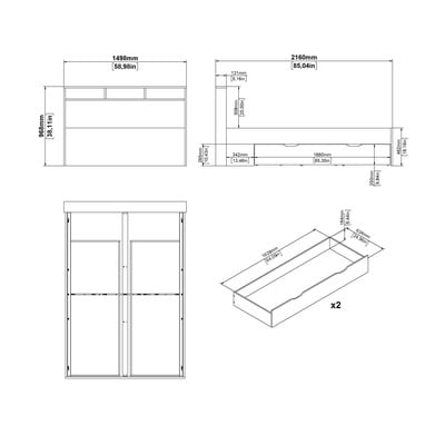 A praktikus tárolásról az ágy alatti két fiók és az ágytámlában található nyitott rekesz gondoskodik.