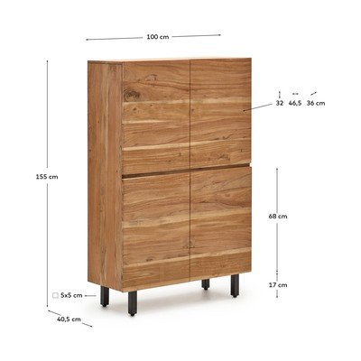 AkácfaFelületkezelés: fehérítésMatt dekorralNatúr színűSzélesség 100 cmMagasság 155 cmMélység 40,5 cm