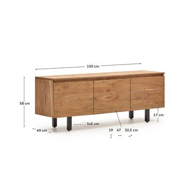 Uxue tv-állványAkácfa, felületkezelés: fehérítés, matt dekorral, natúr színű, szélesség 150 cm, magasság 58 cm, mélység 40 cm