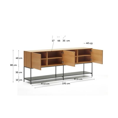 Tölgyfa dekorral, MDF, felületkezelés: furnér-felületkezelés: lakkozás, natúr színű, szélesség 195 cm, magasság 80 cm, mélység 40 cm
