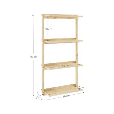 A könyvespolc minőségi fenyőfából készült, természetes színben, ami elegáns és időtlen megjelenésű.
