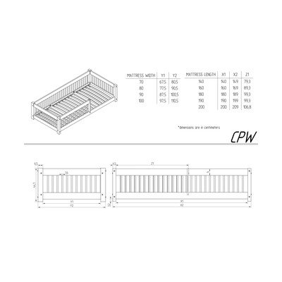 90x160 cm, ágyráccsal, borovi fenyő, felületkezelés: kezelés nélkül-felületkezelés: kefélés, natúr színű