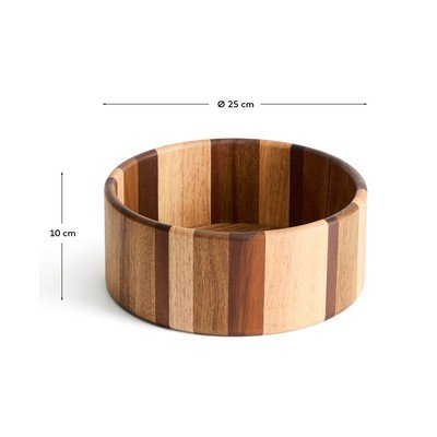 A Kave Home márka Nover natúr színű fa szervírozó tálkája különböző fafajták kombinációjából készült. Minden darab saját rajzolatú és árnyalatú.
