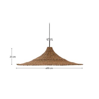 Rattanból készült, egyedi formája pedig - amely egy széles kalapra emlékeztet - a gondos kézi fonás eredménye.