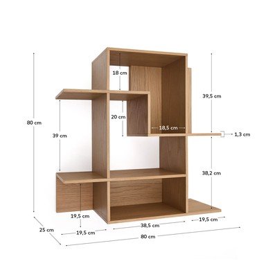 Ina moduláris polcrendszerTölgyfa dekorral, MDF, felületkezelés: furnér, natúr színű, szélesség 80 cm, magasság 80 cm, mélység 25 cm