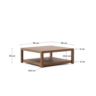 Teakfa, natúr színű, 90x90 cm, magasság 35 cm