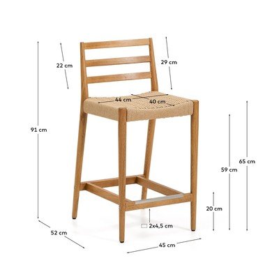 Az ülőfelület kézzel szőtt papírkötélből készült, ami hosszú élettartamot garantál. A vízszintes lécekkel ellátott háttámla és a praktikus lábtartó fokozza az ülés kényelmét.