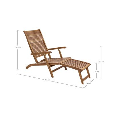 Noemi kerti napozóágyÁllítható, tömörfa, natúr színű, terhelhetőség 110 kg, szélesség 58 cm, magasság 89,5 cm, mélység 163 cm