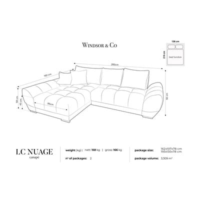 A Nuage kanapét kétféle változatban kínáljuk: bal és jobb oldali elrendezésben.