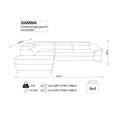 Kinyitható, fekete, szélesség 219 cm, ülésmélység 57 cm