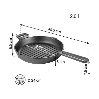 A védőréteggel ellátott öntöttvas főzőedények tapadásmentes tulajdonságokkal rendelkeznek, és védettek a korrózióval szemben. A serpenyő használható a Party Time Power Grillben is.