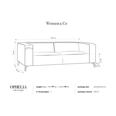 FeketeHáromszemélyesSzélesség 230 cmMélység 95 cmÜlésmélység 59 cm