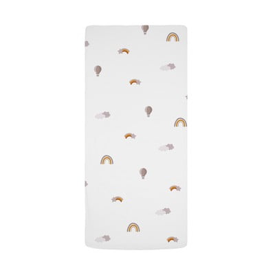 Balloon Dreaming gyerek lepedőGumis, babaágyhoz, pamut-szatén, csillagos, fehér, 60x120 cm