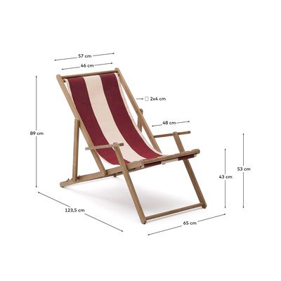 Vilara kerti napozóágyÁllítható-összecsukható, tömörfa, piros, terhelhetőség 130 kg, szélesség 65 cm, magasság 89 cm, mélység 123,5 cm