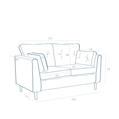 A Portobello kanapé hossza 150 cm, és két személy számára alkalmas. A huzat nagyon kopásálló, eléri az 50 000-es martindale számot.