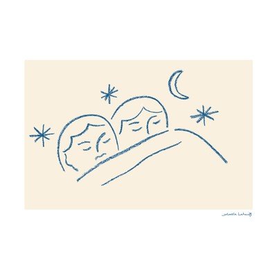 A Slumber - Amélie Lehoux poszter a csillagok és a hold alatt összebújó két alvó alak gyengéd motívumát ábrázolja. Egyszerű, de markáns vonalvezetésével a béke és a nyugalom érzetét kelti.