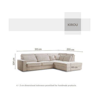 Szürkésbézs zsenília sarokkanapé (jobb oldali-L alakú) Kirou – Maison de Rêve