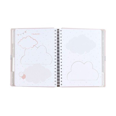 Szép, ízléses design, a benne lévő matricák és egyéb kiegészítők feldobják a babanaplót.