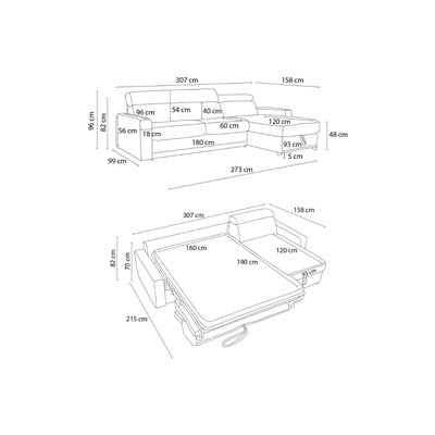 Jobb oldali-bal oldali-variálható sarok-heverő résszel