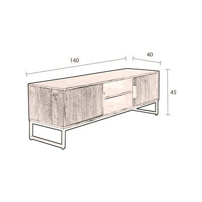 A TV-állvány gondosan kiválogatott anyagokból készül és nagy tárolóhelyet biztosít. A vasszerkezet szilárd és stabil, és a porkezelésnek köszönhetően ellenáll a korróziónak. Az ajtó mangófa, ezért elbűvölő természetes designnal rendelkezik.