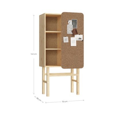 A Karup Design márka praktikus kapcsolata a könyvespolc és az üzenőtábla között. A bútor szerkezete fenyőfából készült. Ezt egy parafa falitábla egészíti ki, ami további tárhelyet rejt.
