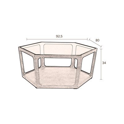 Üveg asztallappal, sötét natúr színű, 80x92,5 cm, magasság 34 cm