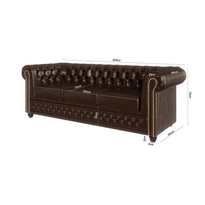 Bőrutánzat, mindennapos alvásra-kinyitható, chesterfield, sötétbarna, vízlepergető-háziállatbarát-foltálló, kétszemélyes, szélesség 203 cm
