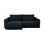 Sötétkék bársony kinyitható-tárolóhelyes sarokkanapé (bal oldali-heverő résszel) Kapua – Makamii