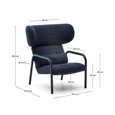 A fotel lábai és karfái 38 mm-es cső alakú acélból készültek, porfestett és mikrotextúrás felülettel, ami szilárdságot és hosszú élettartamot biztosít. A fotel egy kollekció része, és lábtartó is vásárolható hozzá.