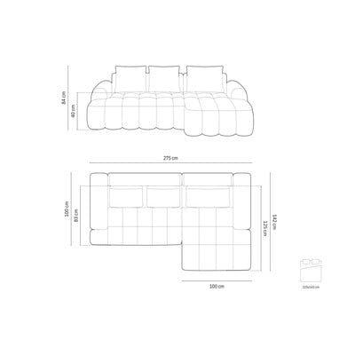 Kinyitható-tárolóhelyes, jobb oldali-heverő résszel, sötétkék, négyszemélyes, szélesség 275 cm