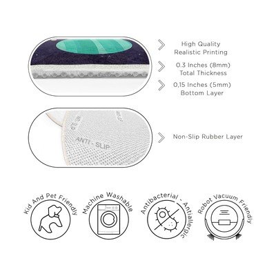 A Mila Home márka Into The Space játszószőnyege színes űrmintájával minden gyereket elbűvöl és könnyen mosható.