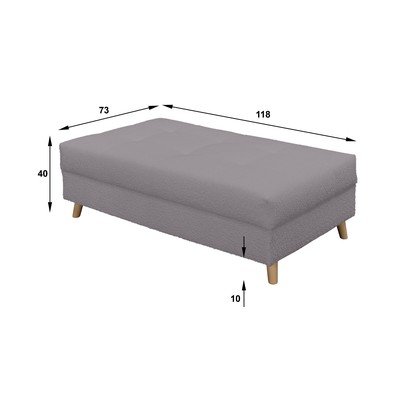 Buklé, sötétszürke, szélesség 118 cm, mélység 73 cm, magasság 40 cm