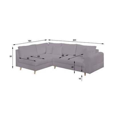 Buklé, bal oldali-L alakú, szürke, háromszemélyes, szélesség 231 cm