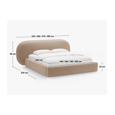 Bézs kárpitozott ágyneműtartós franciaágy ágyráccsal 200x200 cm Ovalo – Micadoni