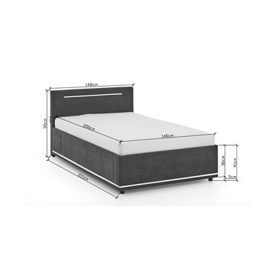 140x200 cm, ágyrács nélkül, kárpitozott, világítással-USB csatlakozóval, sötétszürke
